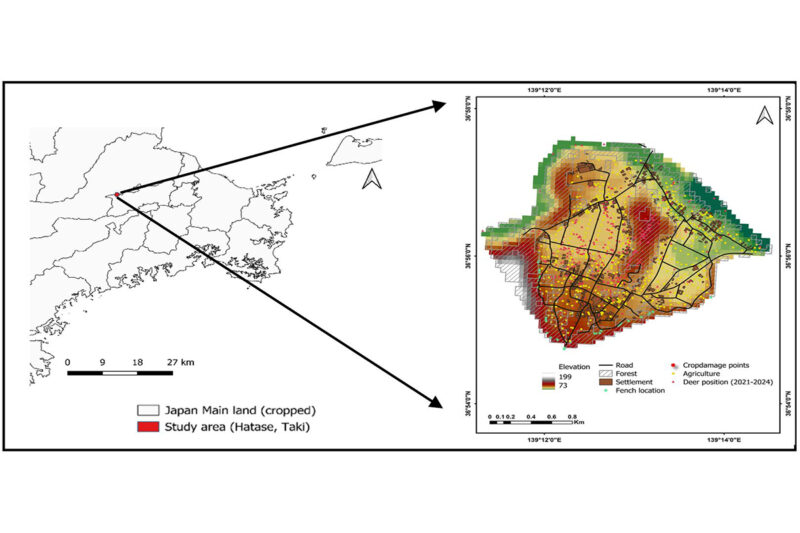 京都先端科学大学 沖一雄工学部教授、東京大学 生産技術研究所のパンディト サンタ特任研究員らの研究チームが、ニホンジカの生息域と人との接触時リスクを同時に評価する地理空間的分析手法を開発