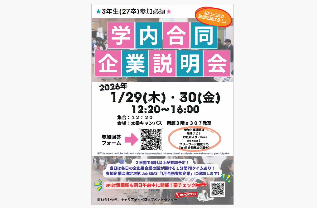 京都先端科学大学では、企業・団体の皆様に本学学生に向けた求人情報のご提供をお願いしております。求人情報の受付け・登録方法については、以下よりご確認ください。