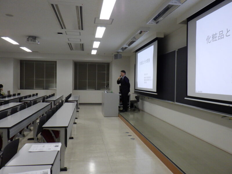 第4回は、香椎化学工業株式会社カシーテクニカルセンター開発本部学術グループ課長として、化粧品の開発や、医薬部外品の厚生労働省への申請業務にも携わっている村田祥全先生に「化粧品とその開発」と題してご講演いただきました。