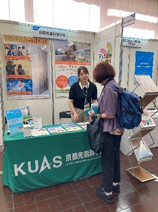 本学はこのイベントに毎回出展しており、今年はオープンイノベーションセンター・亀岡(OICK)を中心に、大学のシーズを活用した企業の課題解決支援等の活動について紹介しました。