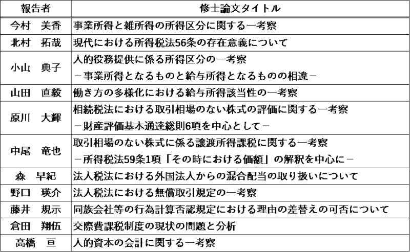 すべての報告からは、6月のテーマ報告会以降の取り組みの成果として、修士論文の完成に向けた大きな進捗が確認されました。また、各報告に対して教員から多くのコメントが出され、報告者にとっては完成に向けたブラッシュアップに役立つ多くの材料が得られた生産的な時間となりました。