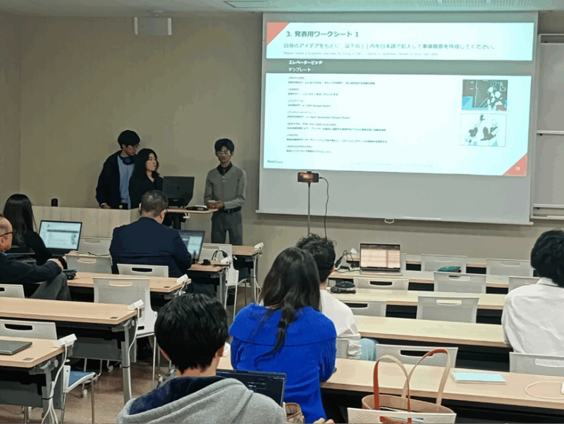 発表終了後には、鹿島建設やアジアクエストの社員の方々より、アイデアをブラッシュアップする視点や事業性を高めるためのアドバイス、改善のポイントなど、最終発表に向け具体的な講評をいただきました。