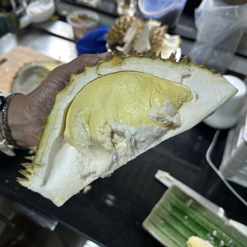 今月の目玉イベントは、友達のドリアン農園を見学に行くことです。熱帯農業国際コースでは、タイ人の学生が英語の授業を受講しているケースもあり、そこで知り合った友達の農園です。実際に訪れた際、その広大さ、従業員の数、ドリアン生産の仕組み、それぞれの種の取り扱い方など、多くの発見や知識を得ることができました。また初めて収穫したてのドリアンを食べましたが、屋台で置いてあるようなすでに皮から剝かれているものよりも臭みや癖がなく、美味しくいただくことができました。この農園見学を通して私は人との出会いに恵まれたと感じました。