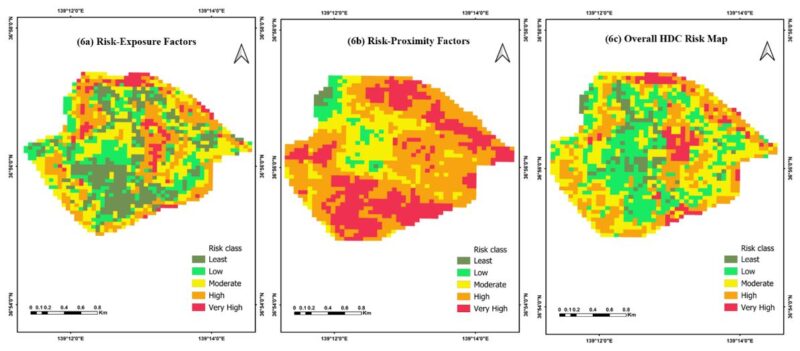 (左から、暴露要因、近接要因、HDCリスク総合マップ)